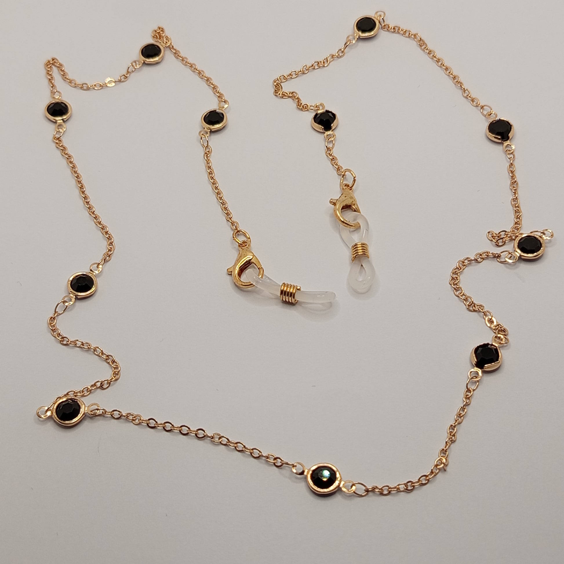 Αλυσίδα Γυαλιών Χρυσή με Μαύρη Πλατιά Πέτρα και Χρυσή Λεπτομέρεια