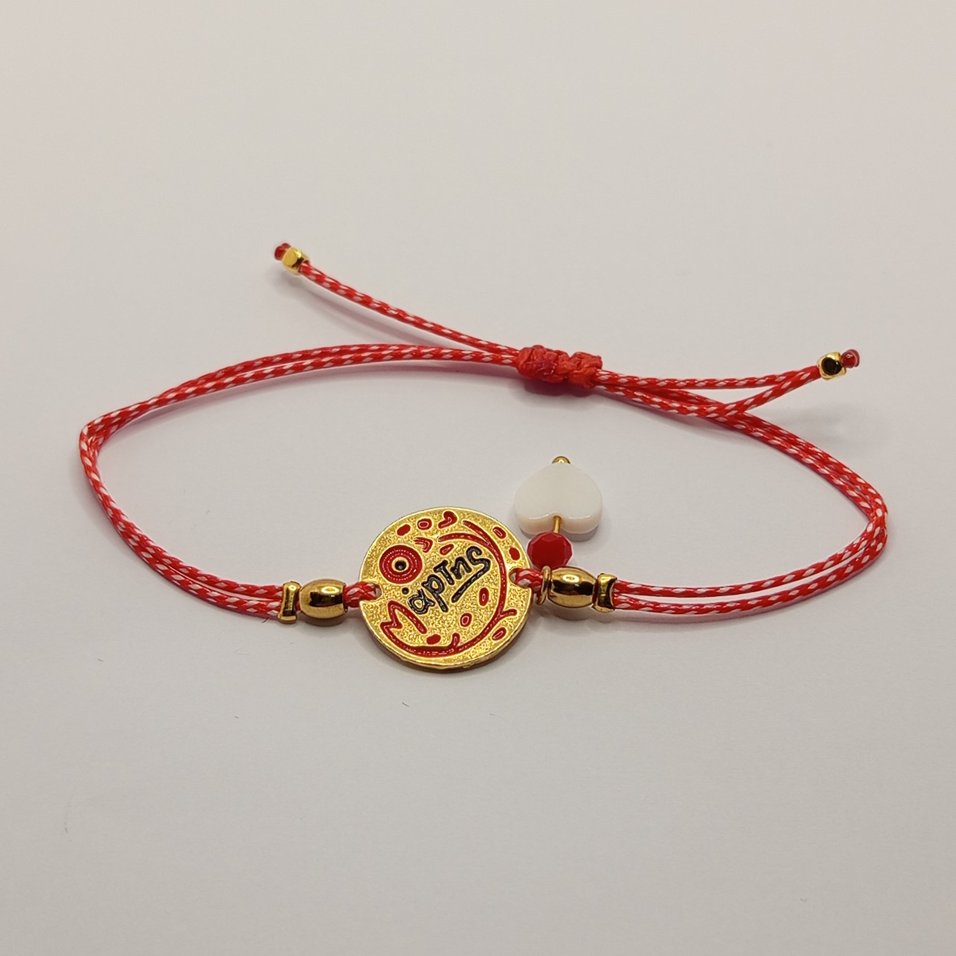 Το μαρτάκι με χρυσή λεπτομέρεια και κόκκινη πέρλα αποπνέει μία αίσθηση κομψότητας και παράλληλα διατηρεί τη παραδοσιακή σημασία του. Ο χρυσός συνδυάζεται με τη ζεστασιά της κόκκινης πέρλας, δημιουργώντας ένα αρμονικό και ελκυστικό σχέδιο. Η κόκκινη πέρλα μπορεί να συμβολίζει τύχη, προστασία και υγεία, ενώ το χρυσό προσδίδει πολυτέλεια και φωτεινότητα. Ένα τέτοιο μαρτάκι είναι εξαιρετικά κατάλληλο για το Μάρτιο