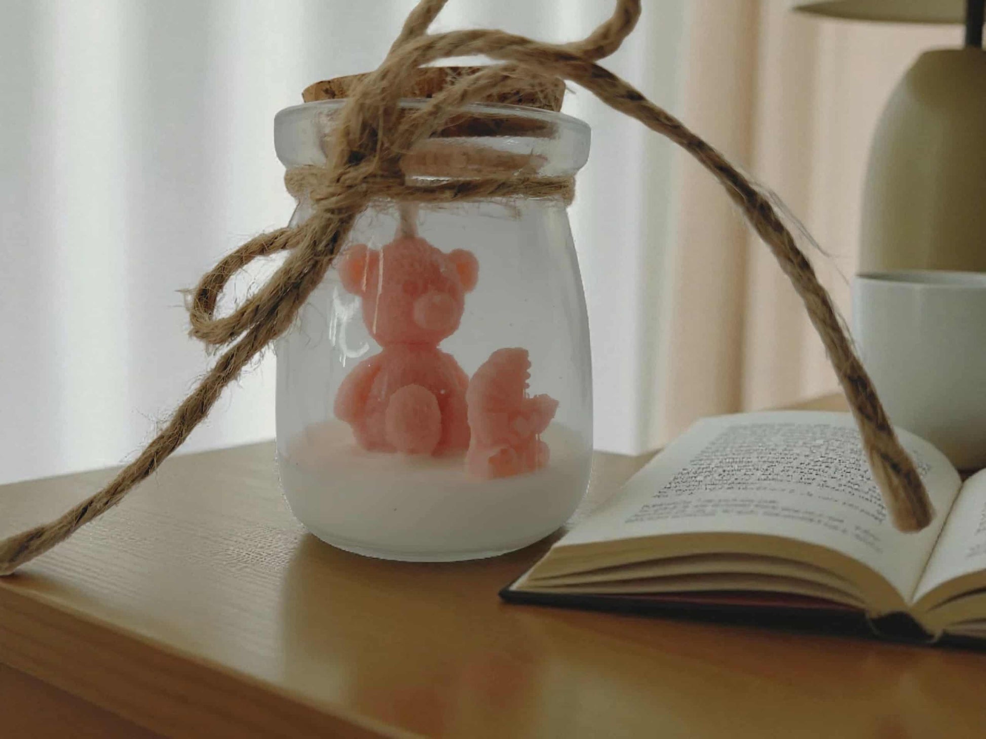 Χειροποίητη Μπομπονιέρα “Little Bear” – Κερί Ελαιοκράμβης σε Γυάλινο Βαζάκι