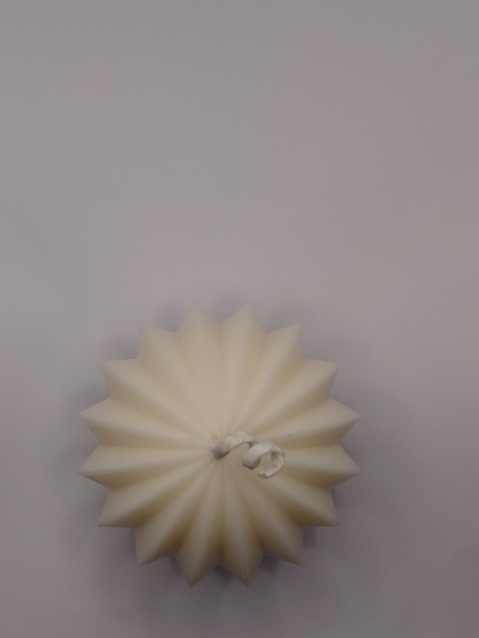 Κατασκευασμένο με προσοχή στη λεπτομέρεια, αυτό το κερί ξεχωρίζει για το μοναδικό του γεωμετρικό σχέδιο που θυμίζει άνθος ή αστεροειδή μορφή — ιδανικό για minimal ή boho διακόσμηση.